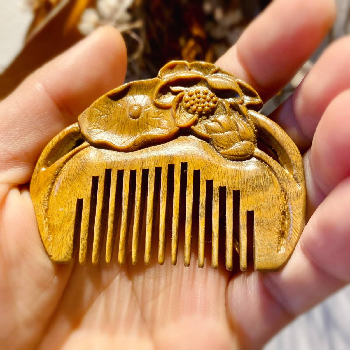 - 高級檀木 ミニ木製櫛 ハス お守り 静電気防止 美髪 頭皮マッサージ