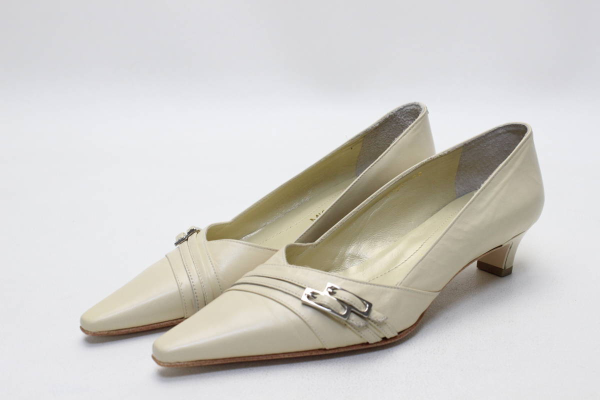 - 34■MICHEL KLEIN 本革細ベルトパンプス(22cmE)美品