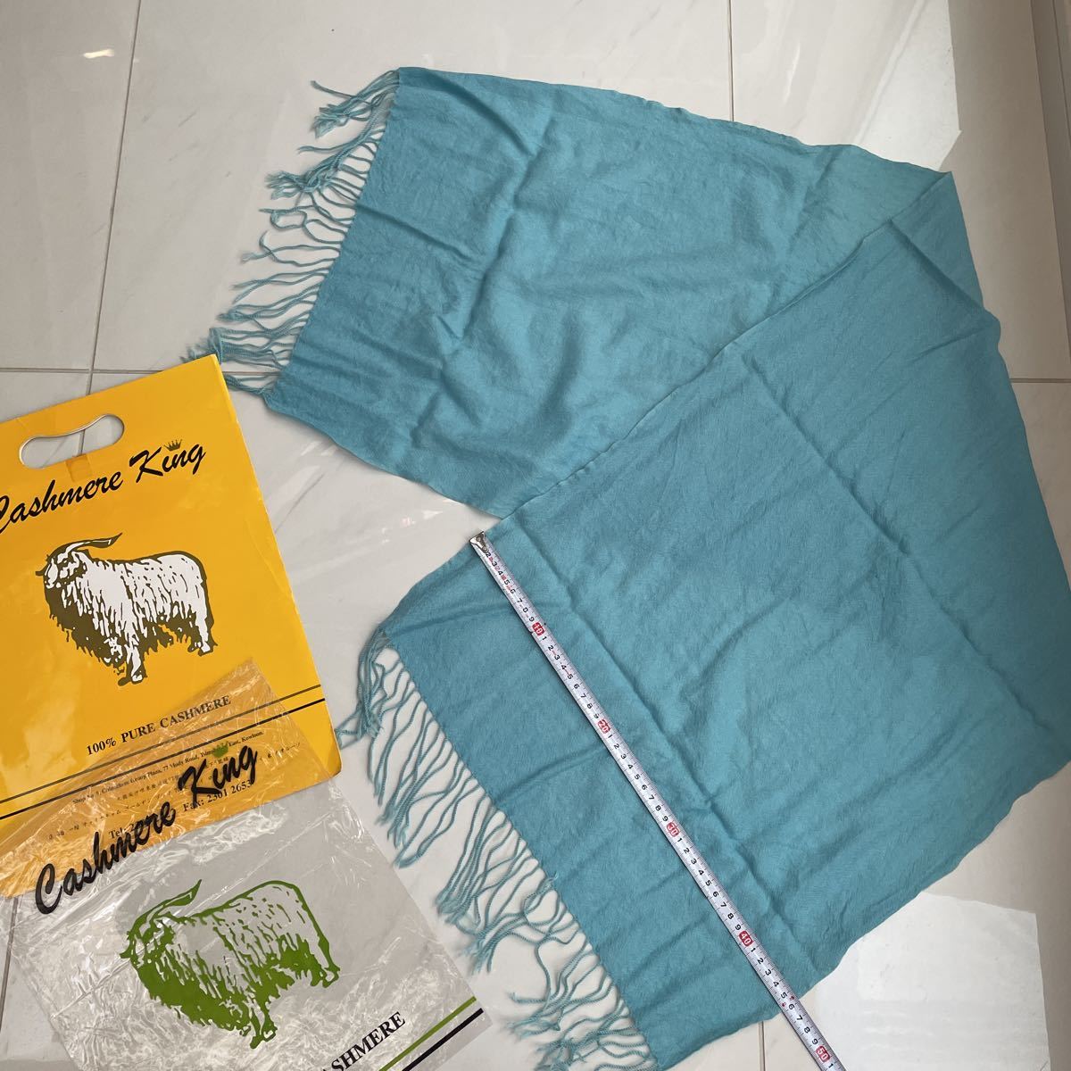 - 香港お土産 カシミヤ パシュミナ 6500円位 海外旅行土産 水色
