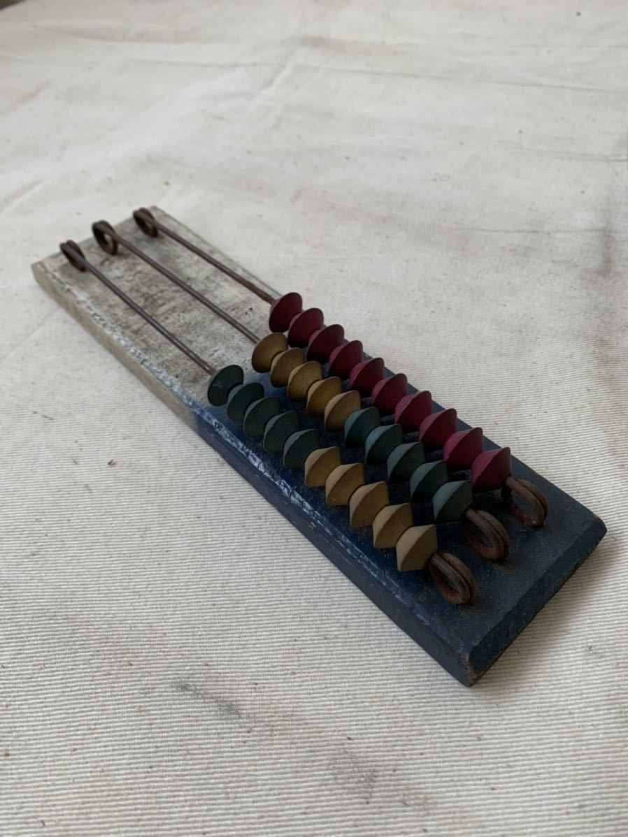 - 古い木製三桁そろばん算盤 古道具古物骨董アンティークビンテージ昭和レトロ時代当時物インテリアディスプレイコレクション飾り雑貨珍品