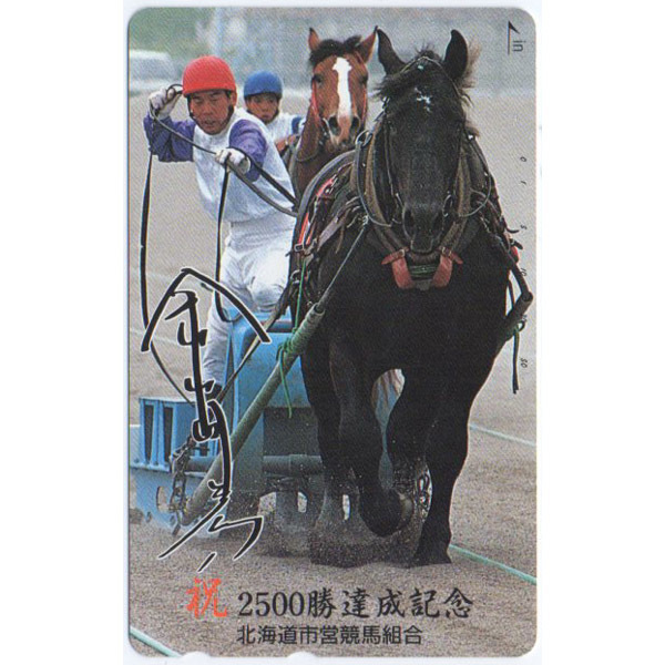 - テレカ 50度・ばんえい競馬・祝 2500勝達成記念「金山明彦」・未使用
