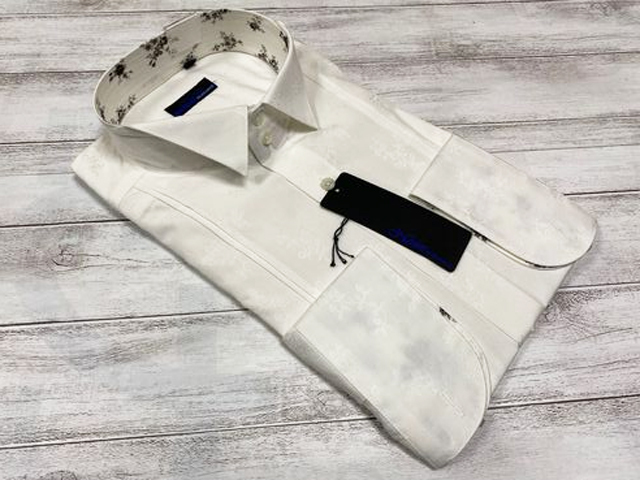 - 【長138】■NWL613-02■Mサイズ■白■News elegance 綿100% 長袖ドレスシャツ 花柄