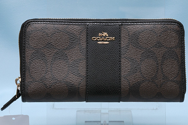 > COACH コーチ レディース 長財布 F54630 未使用品 送料無料 【b6】 ファスナー付き長財布 ブラック×ブラウン
