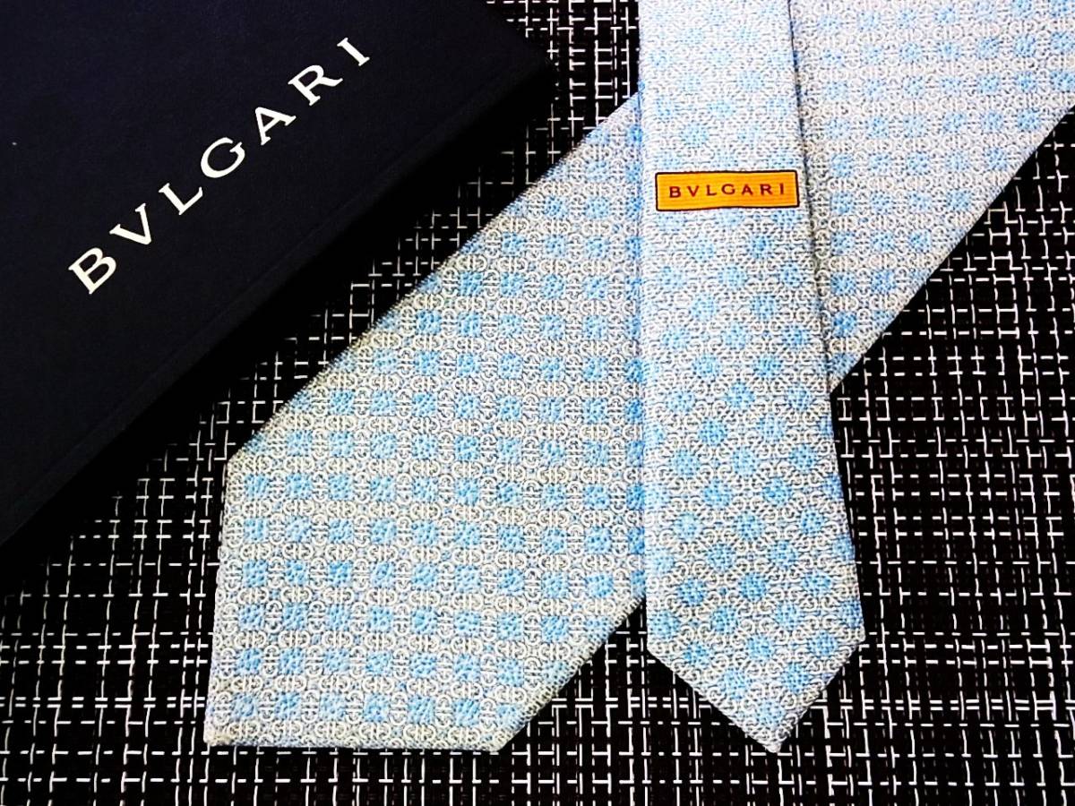 - ☆状態並N☆5929■【BVLGARI】ブルガリ「総ロゴ」 「最高級セッテピエゲ」 ネクタイ