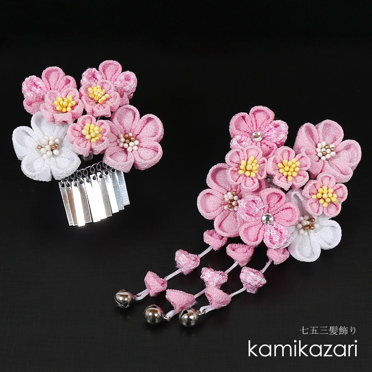 - 髪飾り お子様用 キッズ 七五三 女の子 ヘアアクセサリー つまみ細工 髪飾り ピンク 7781654