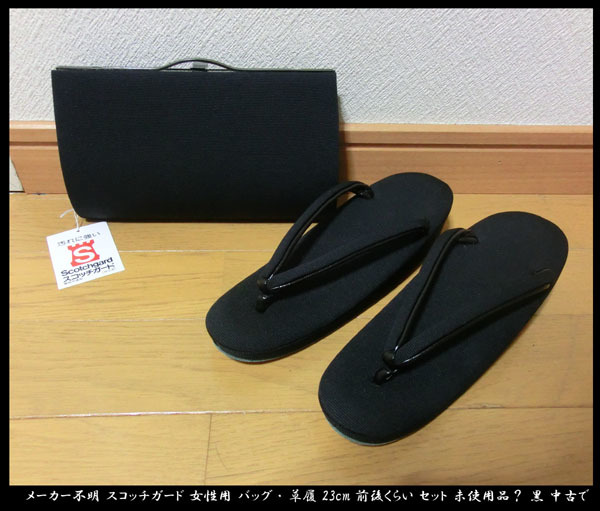 > ■メーカー不明 スコッチガード 女性用 バッグ・ 草履 23cm前後くらい セット 未使用品? 黒 中古で