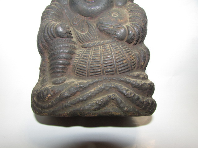 - ( 会津若松・旧家・蔵出し)明治時代( 古い時代の可愛い顔の恵比寿様土人形貯金箱 )貴重・珍品
