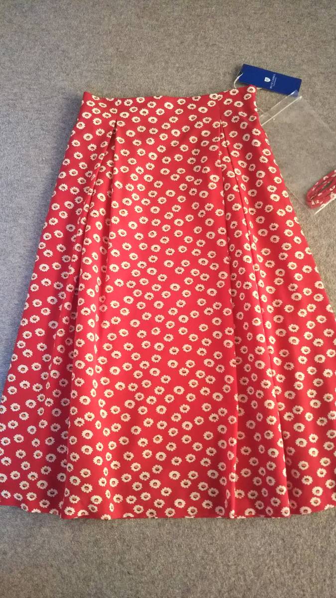 - 新品 ブルーレーベルクレストブリッジ リボン付き可愛いマーガレットフラワープリントロングスカート 36 赤 23100円