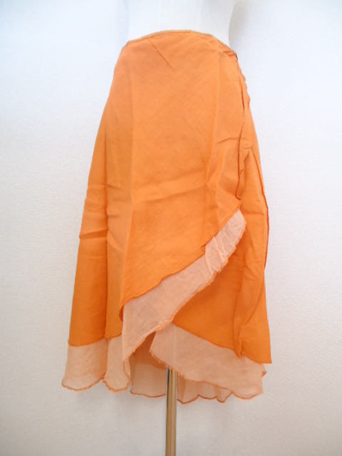 > 【KCM】eti-92-M★新品★【CHIARA】レディース コットン フレアー 巻きスカート ラップスカート サイズ M オレンジ系