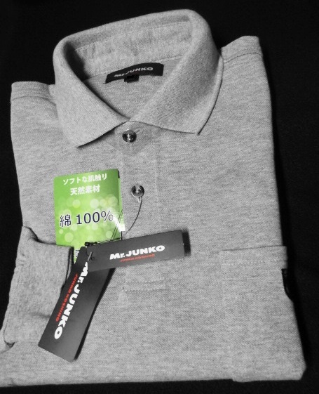 - 新品 Mr.JUNKO 定番 長袖 ポロ L グレー 純綿 カノコ 抗菌防臭加工 /PAPAポロ レターパック
