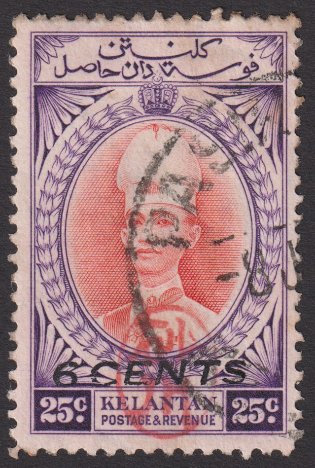 - 南方占領地切手 マライ ケランタン州 砂川印加刷 6c/25c 使用済 JPS:3M5 0651