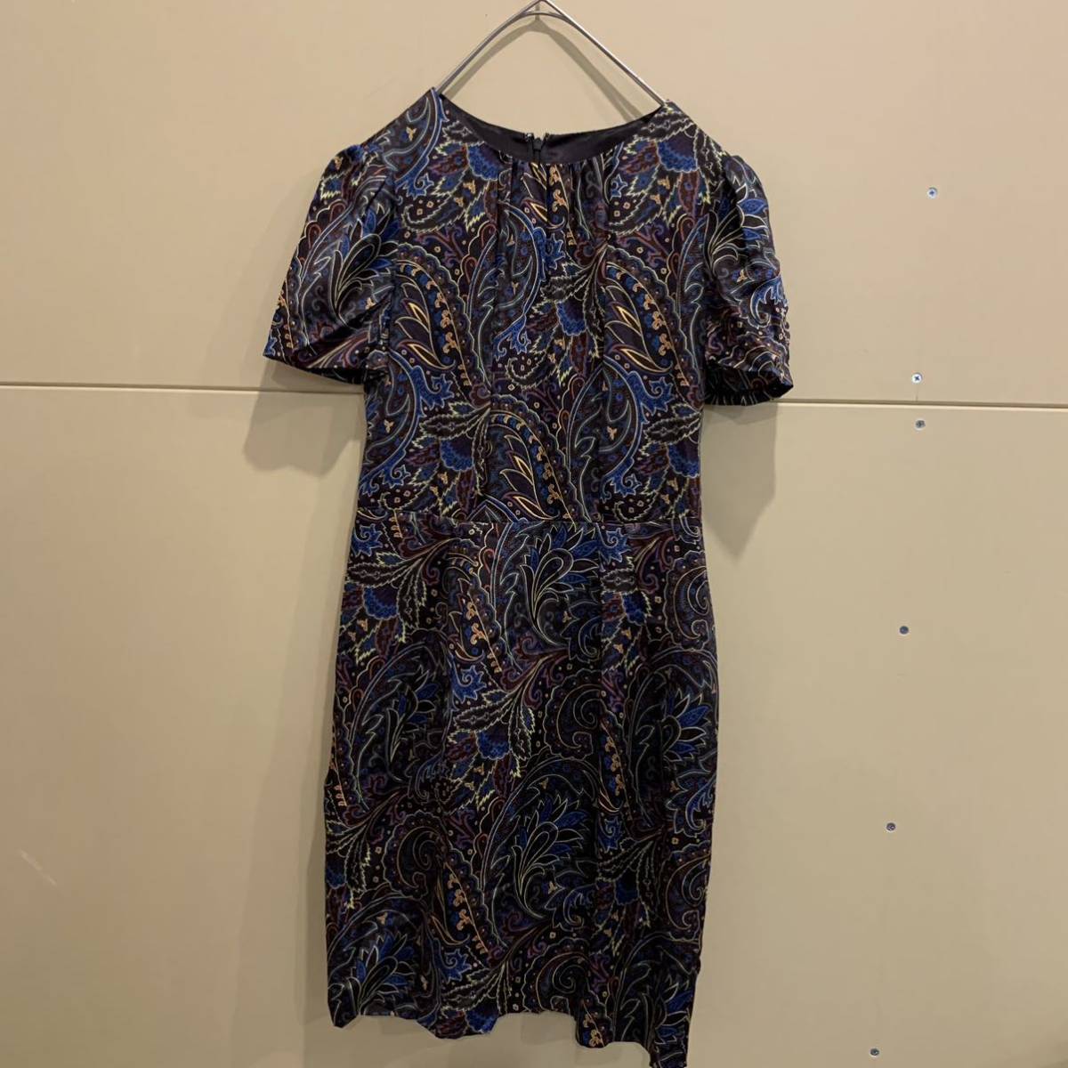 - 美品 レトロワンピース プリントワンピース ワンピース 半袖ワンピース 袖パフリーブ テロテロ素材 379