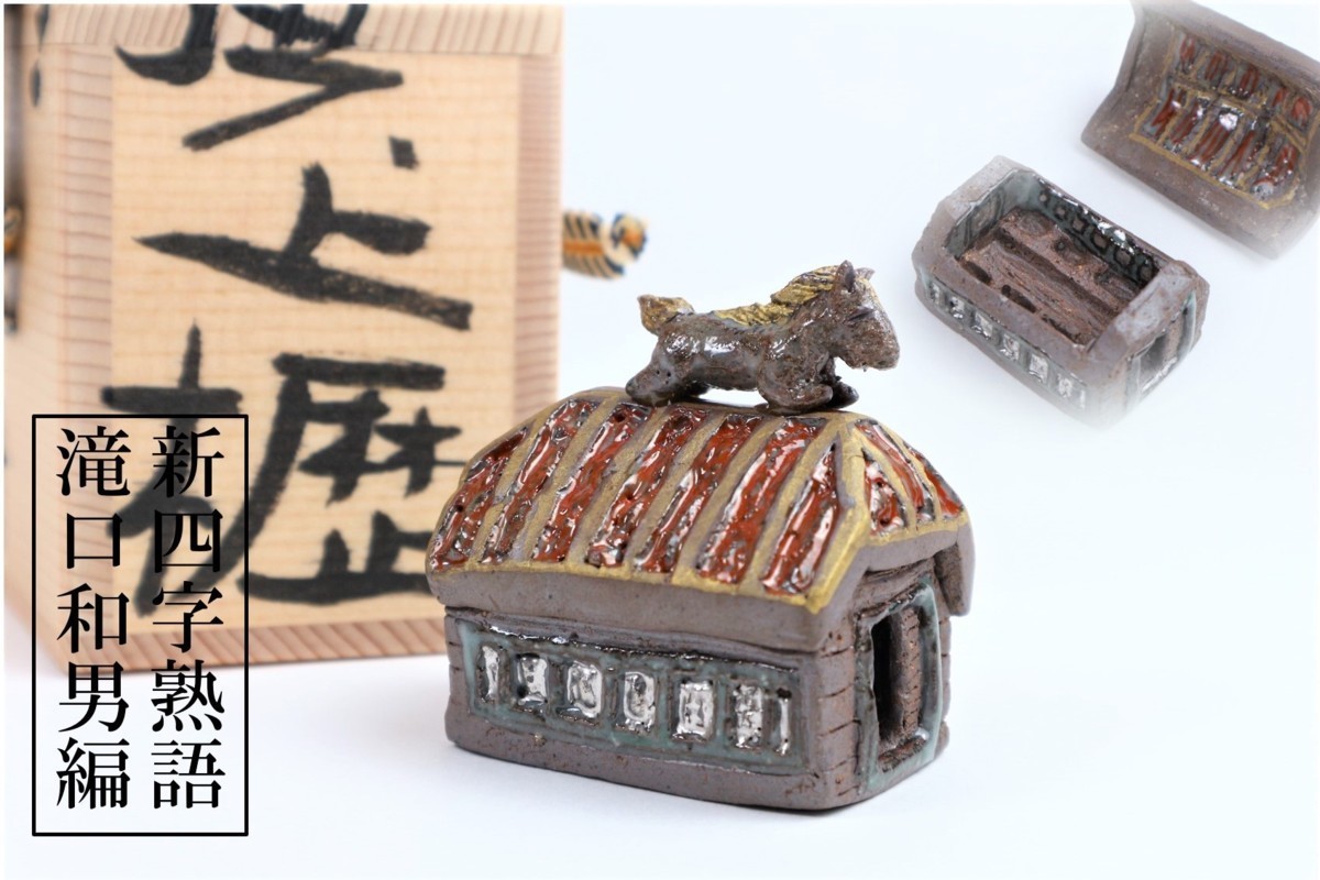 滝口和男「老驥上櫪」図解新四字熟語じてんより 共箱 図録付き 馬 香合 /