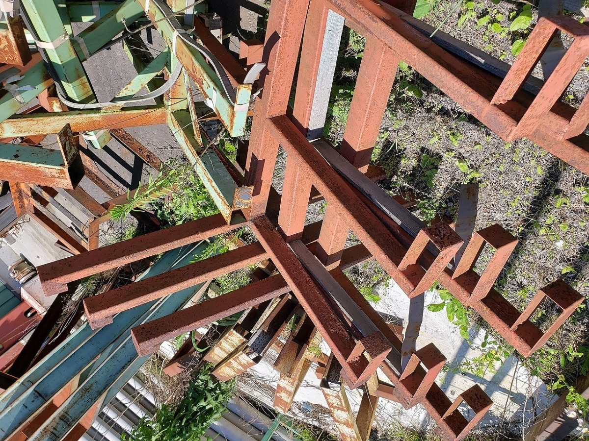 - 3A【棚030718-8(6)】鉄骨スタンドT型 1m巾2m高さ位7段アーム左右50cm巾位