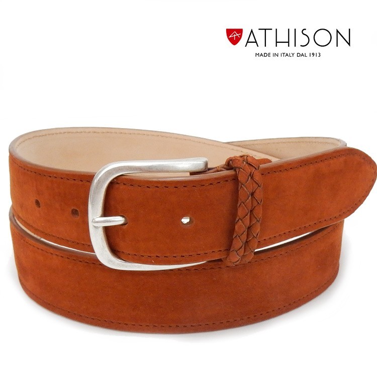 > ATHISON イタリー製ベルト ヌバック/牛革 赤茶 メンズベルト ゴルフベルト 110cm対応 ATS-05
