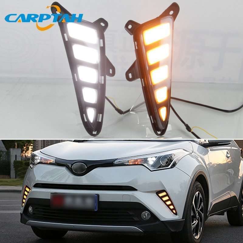 - トヨタ C-HR CHR 2016?2018 フォグランプ LEDデイタイムランニングライト 防水 イエローターンシグナル