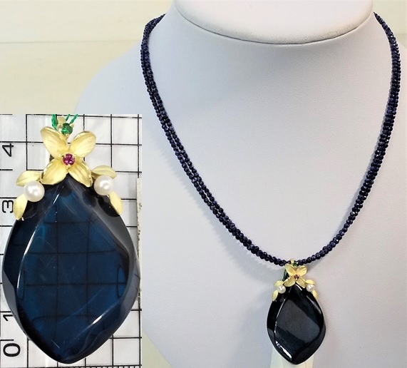 - 146★最終80%OFF 琥珀 ペンダントトップ ブルー K18/ラピスラズリ ネックレス 丸玉ジェット面2連 40cm K18★展示品