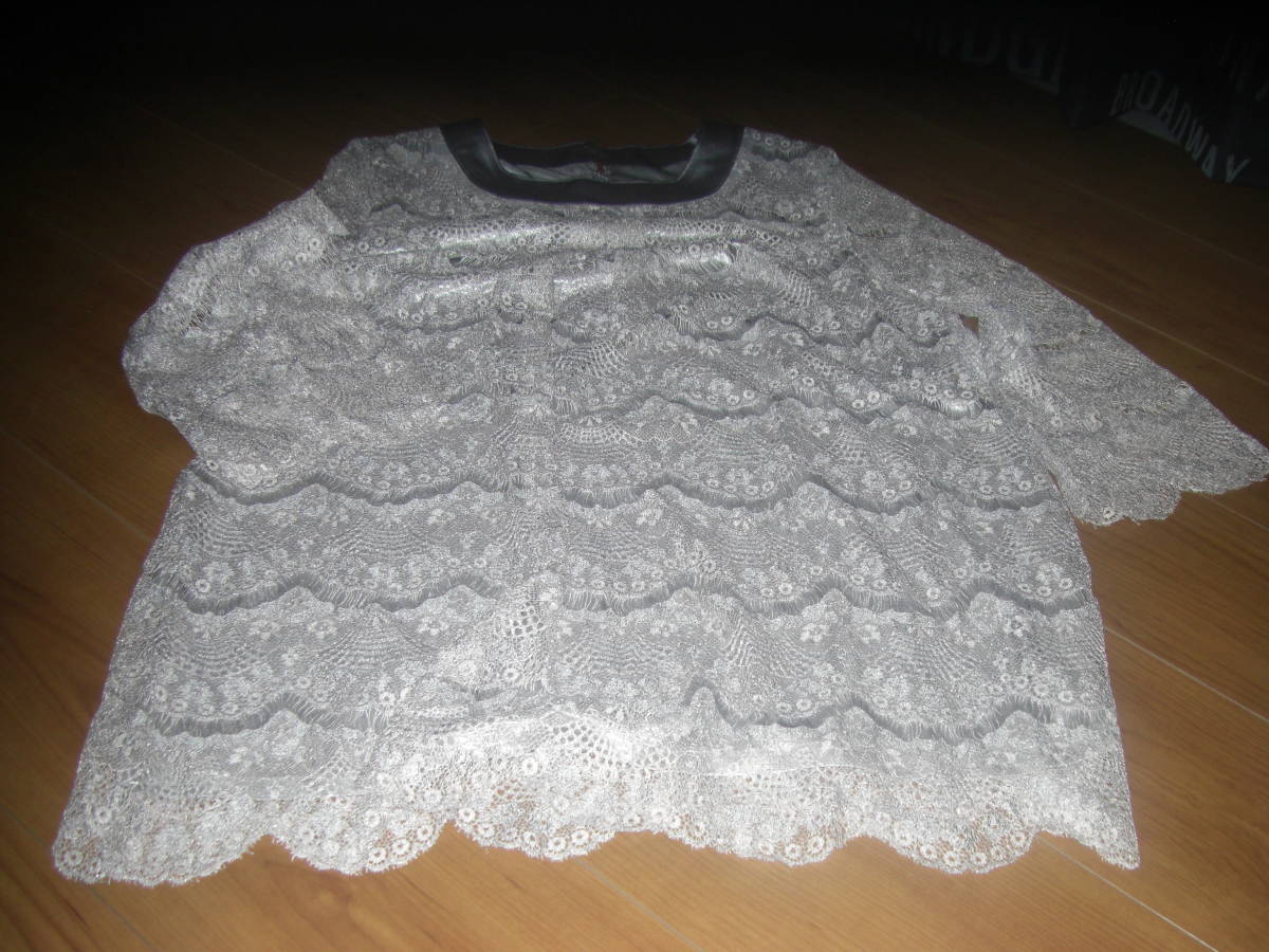 - M グレー丈 レースブラウス 七分