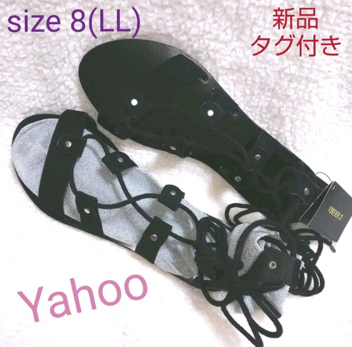 - 編みあげ ペタンコ サンダル ブラック色 LLsize【新品・タグ付き】