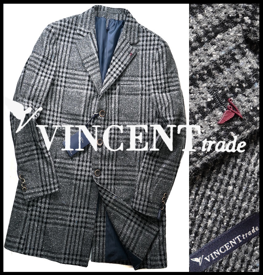 > 新品9.7万【VINCENT TRADE ヴィンセント トレード】伊製/イタリア男の洒脱ブランド/グレンチェックウール混合チェスターコート52/XL相当/B