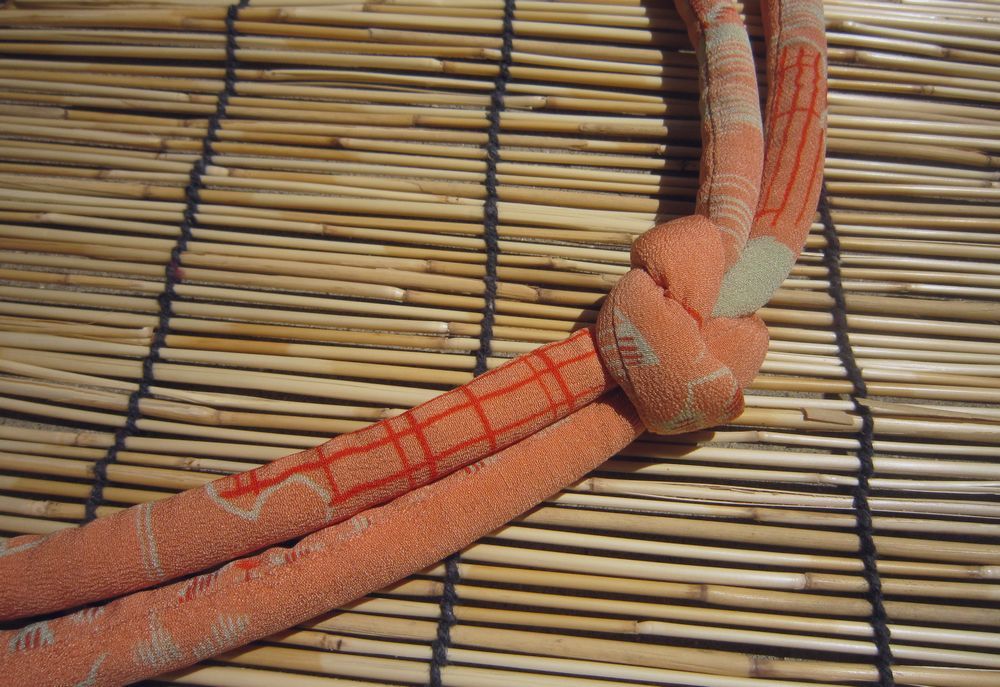 - ◇◆『紅』アンティーク・正絹縮緬 甘い橙色に雪輪柄 丸ぐけ帯締め