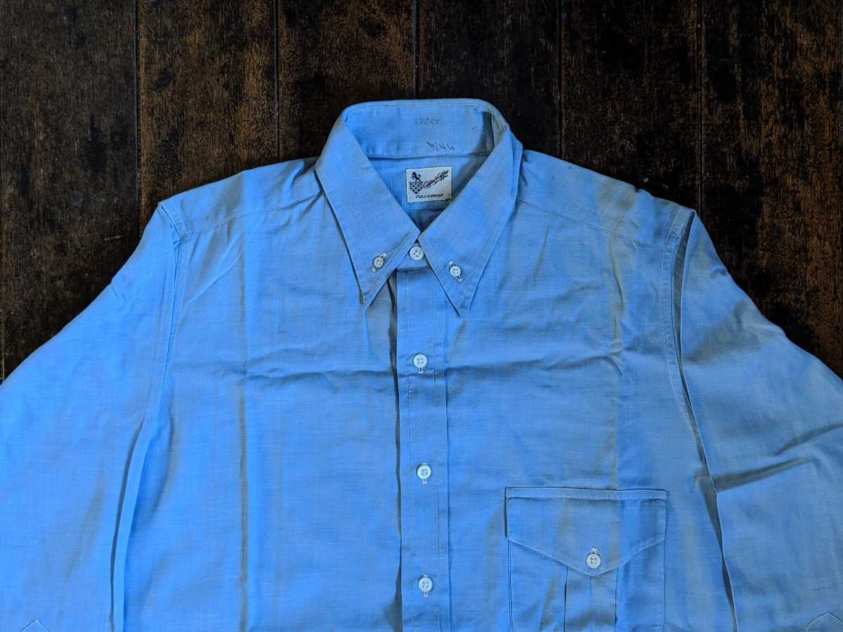 > レア★~ 30 s アンティーク ボタンダウン ドレス シャツ ロングポイント 襟 フラップ マチ ポケット ピン ギャザー 織柄 ビンテージ ワーク