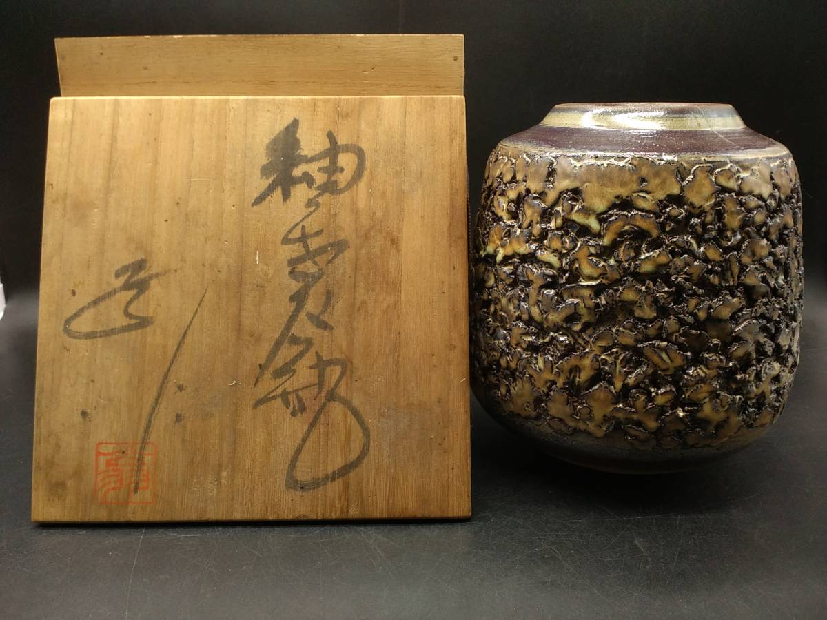 - ▽ 釉彩花瓶 中島翁介作 / 壺 花びん 花器 花入 花生 コレクション インテリア 在銘 銘有 真作