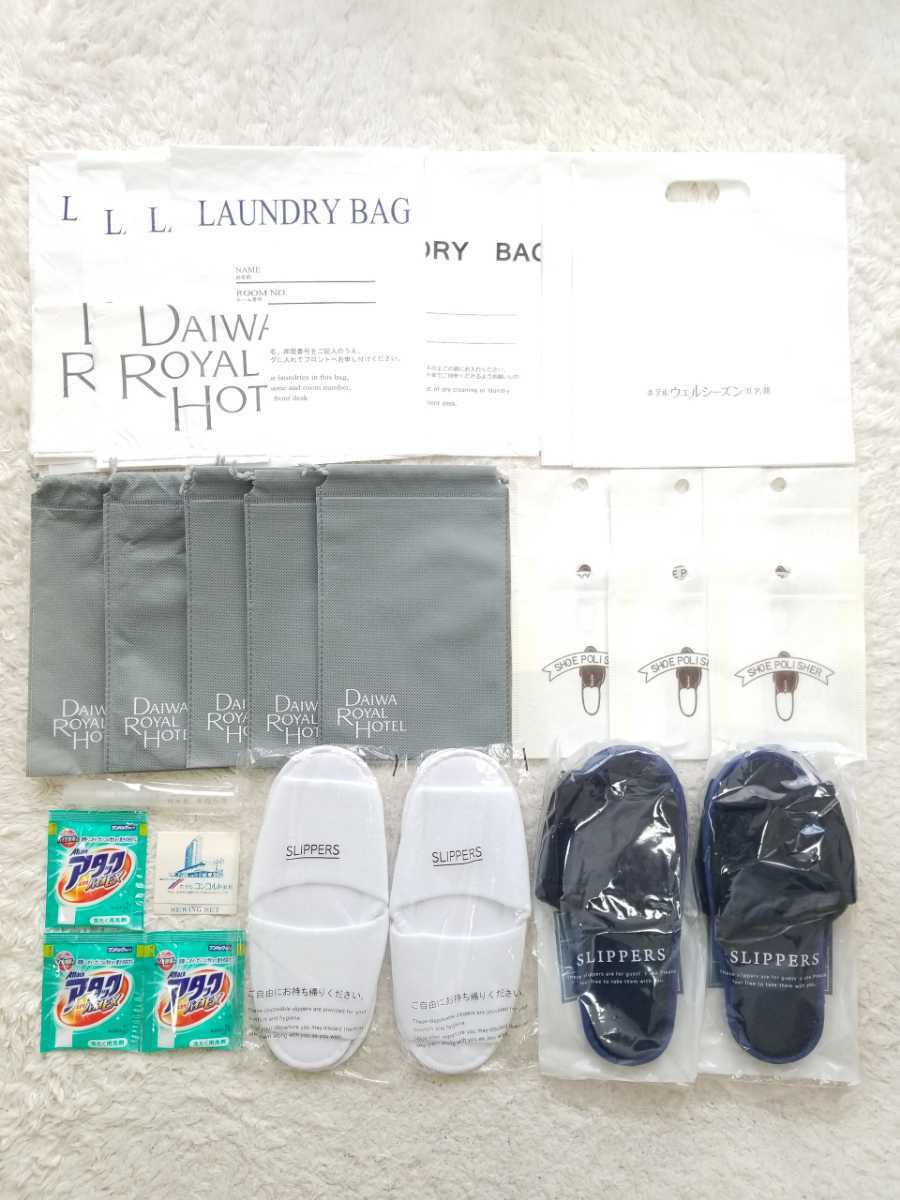 - ☆新品ホテルアメニティスリッパ洗剤ソーイングセット消臭スプレー靴磨きランドリーバッグ不織布巾着袋29点set旅行トラベル出張使い捨て☆