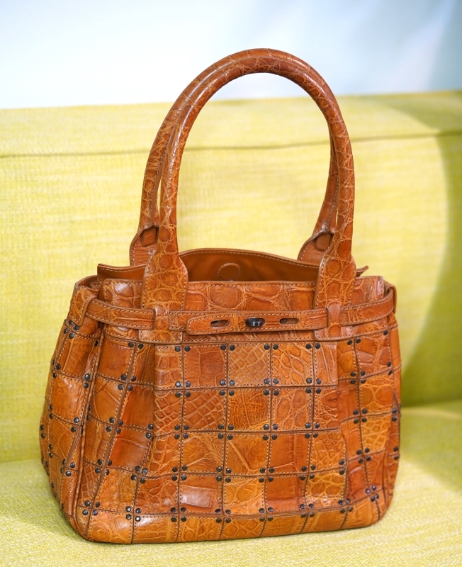 - ITALY アリゲーター / Alligator スタッズ バッグ 鞄 ウイスキー 色 希少