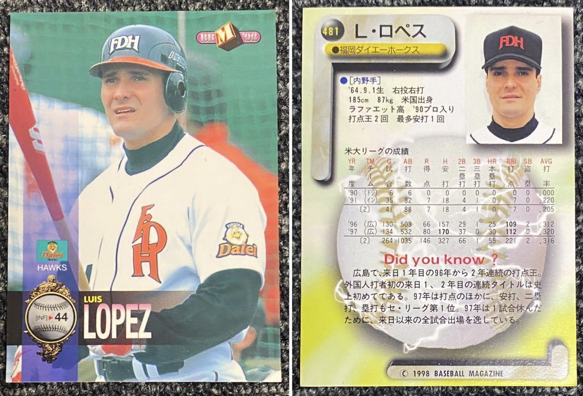 > BBM 1998 L・ロペス 福岡ダイエーホークス レギュラーカード #481 広島東洋カープ 楽天