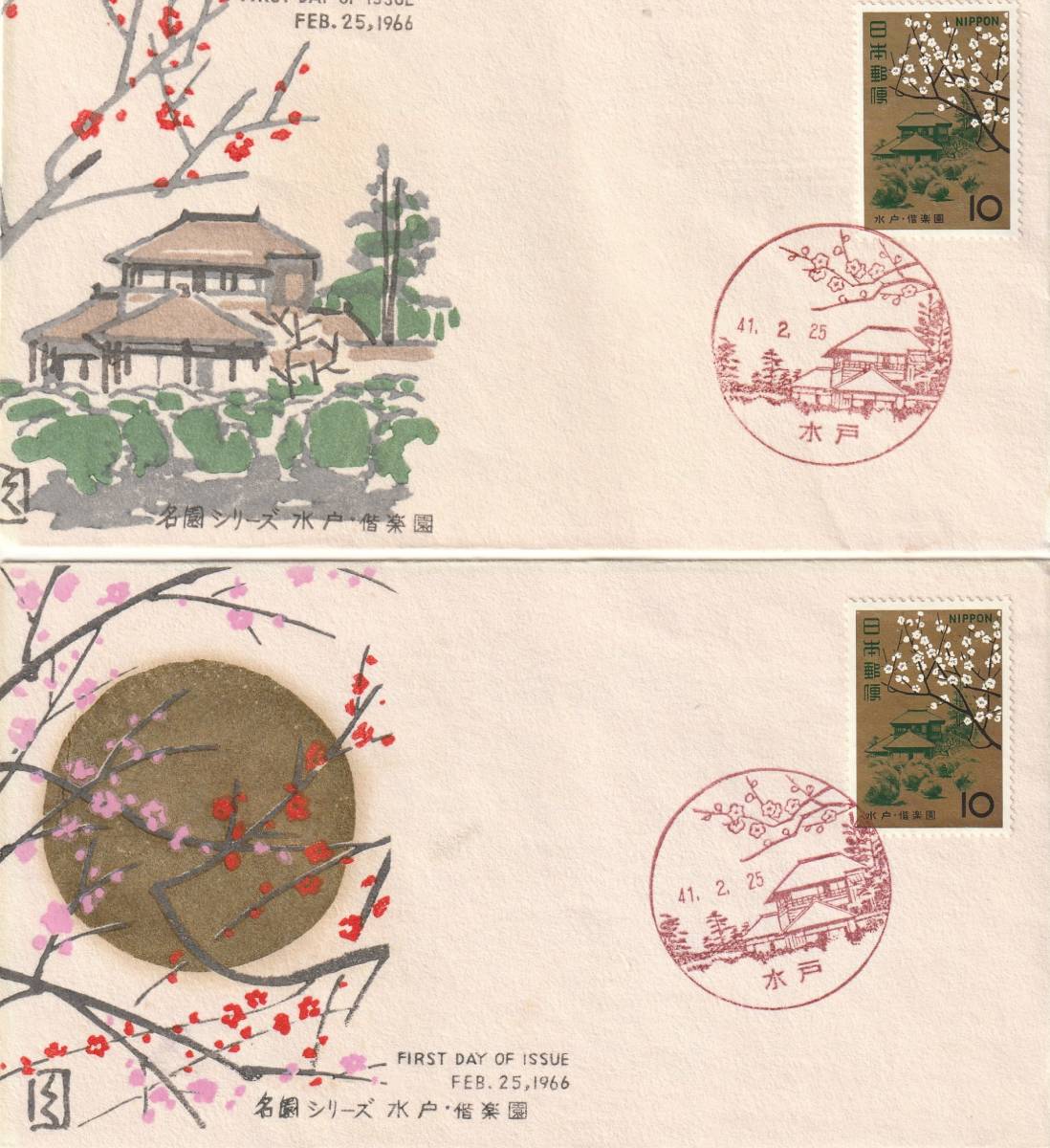 - FDC 1966年 名園シリーズ 偕楽園 (カシエ1-2) 2通 松屋