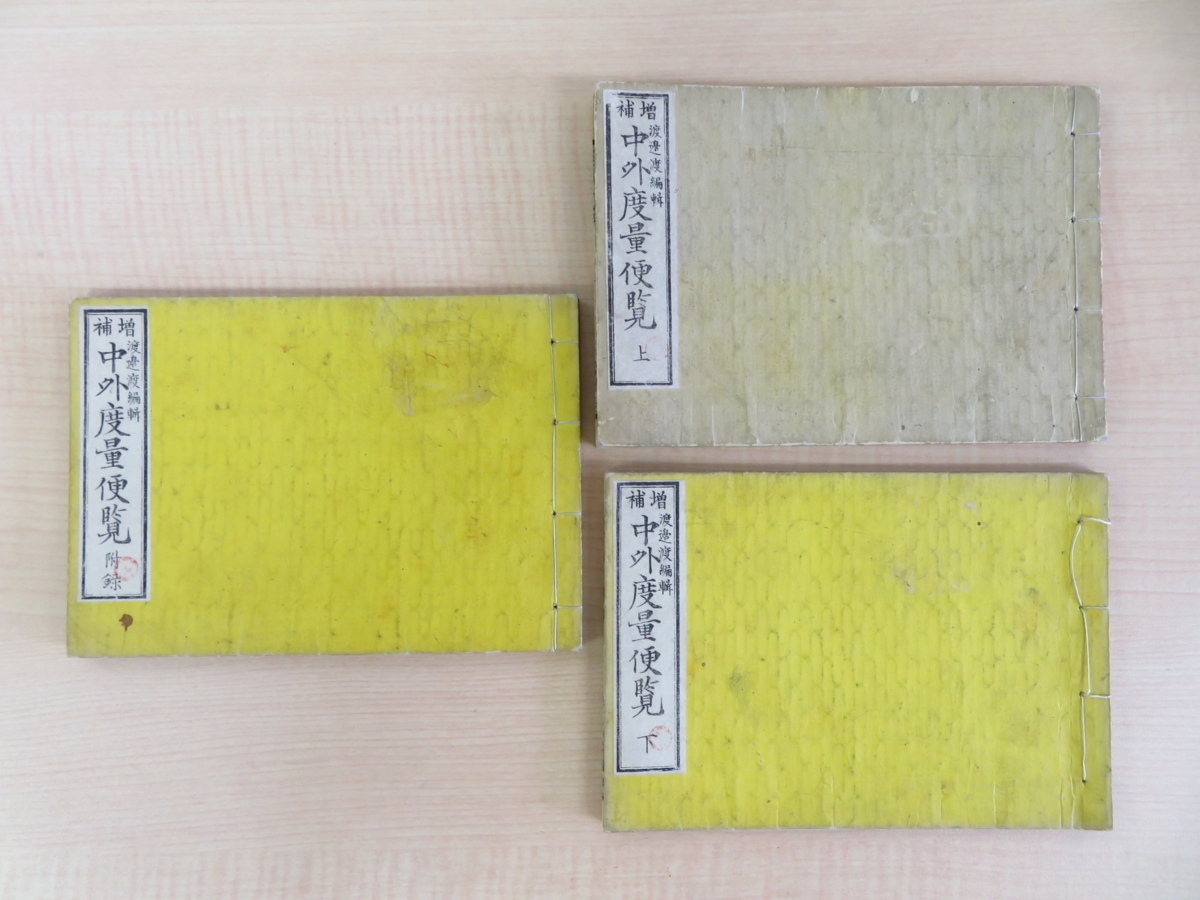 - 渡邉渡編輯『増補 中外度量便覧』(全3冊揃)明治10年 文明開化期の欧米各国のさまざまな数値単位一覧(貨幣・重さ・時間・面積等)