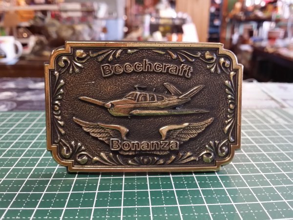 - バックル Beechcraft Bonanza ボナンザ ビーチクラフト 飛行機 ヴィンテージ ベルト 非鉄 真鍮 ブラス