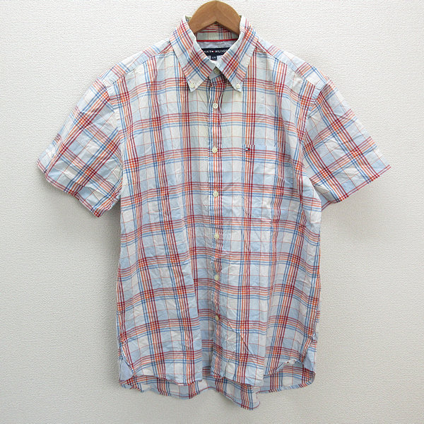 - y■トミーヒルフィガー/TOMMY HILFIGERチェック柄 半袖BDシャツ■マルチ【L】MENS/40【中古】