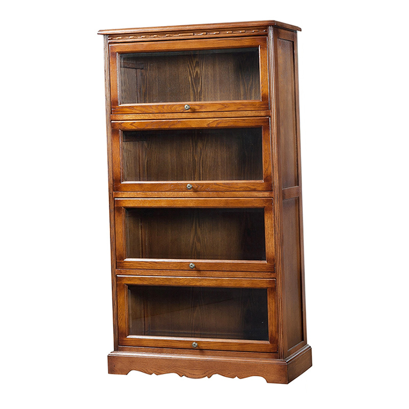 - 英国調 クラシック家具 アンティーク風 ガラス扉付きフリーボックス W85xD33xH154cm オーク材使用
