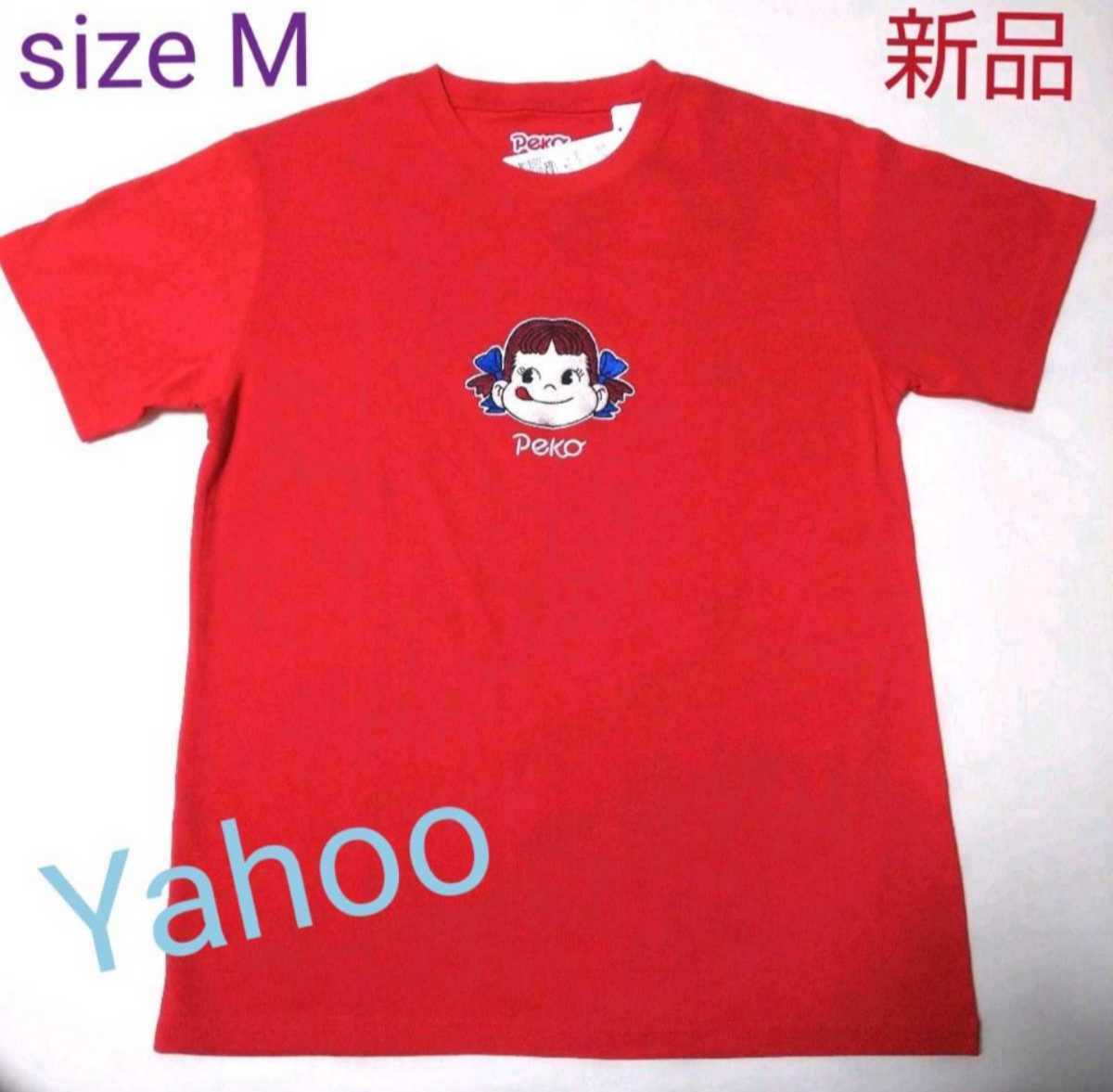 - ペコちゃん Tシャツ 男女兼用 レッド刺繍 Msize【新品・タグ付き】
