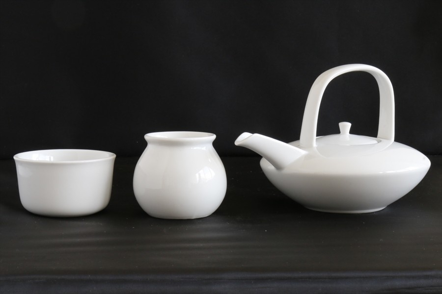 - 国産 白銚子 白水器 白水こぼし 3点セット ■ 陶器 ■ 神道 神棚 神具
