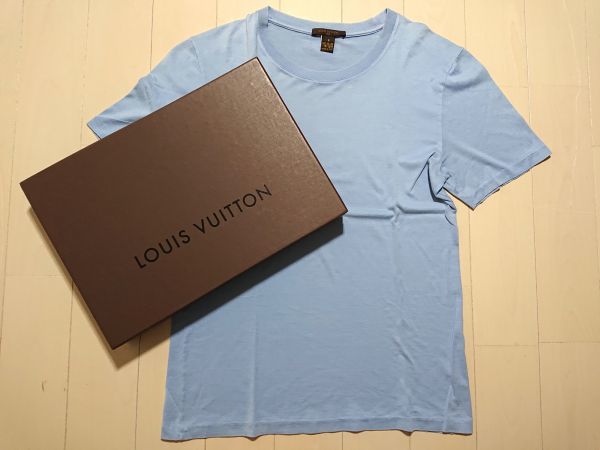 > 【超美品】ルイヴィトン LOUIS VUITTON 裾「LVタグ」Tシャツ ライトブルー SIZE:S (M~L程度)