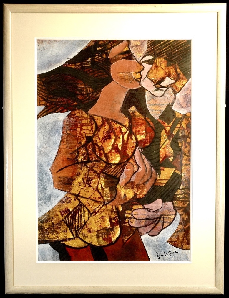 - 1991年 イタリアアーティスト Jean-Marie Gerola作 油彩 人物画 抽象画 15号サイズ 額装品 絵画 アート 幅64.5㎝ 高さ84.5㎝