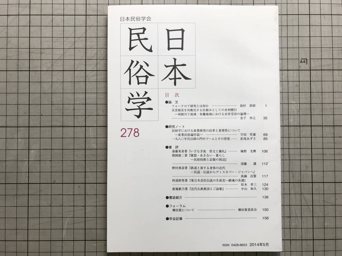- 『日本民俗学 278号 May 2014』フォークロア研究・利根川下流域・布鎌地域・水害受容・産業研究の沿革・門中ブーム 他 日本民俗学会 07248