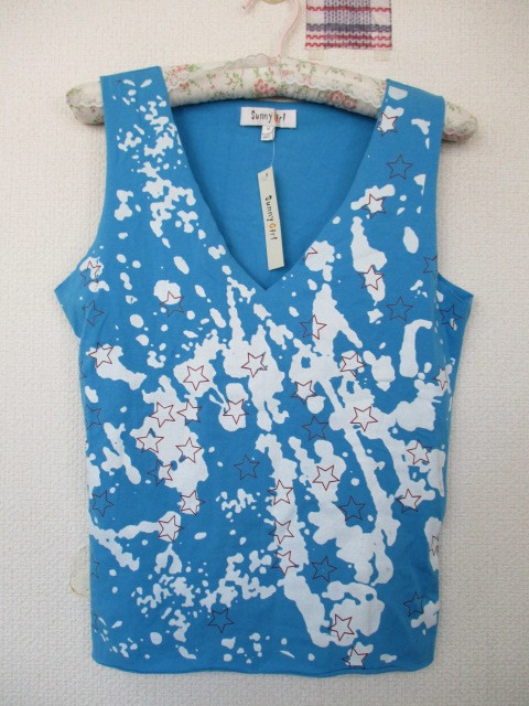 - ★ 未使用 ノースリーブ Vネック カットソー ブルー/星柄(10)※訳あり