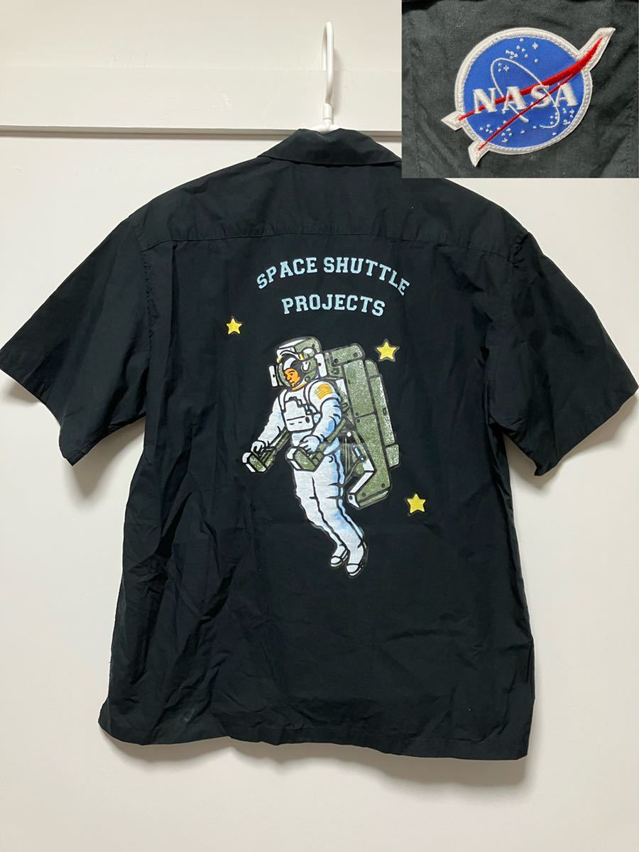 - NASA ナサ メンズ シャツ 半袖 黒 スペースシャトル ワークシャツ 半袖シャツ