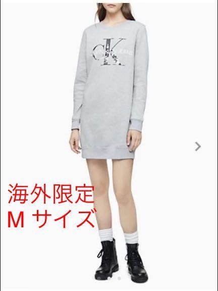 - 海外限定の Calvin Klein ☆カルバンクライン CK ロゴ スウェットワンピース グレー M 新品