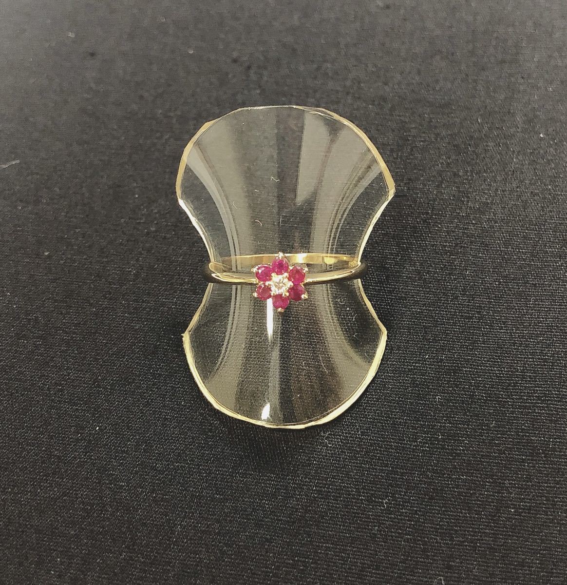 - 【質屋 尾張屋商店 東京】 ☆仕上済☆ K18YG ルビーダイアレディースリング #12.5 花