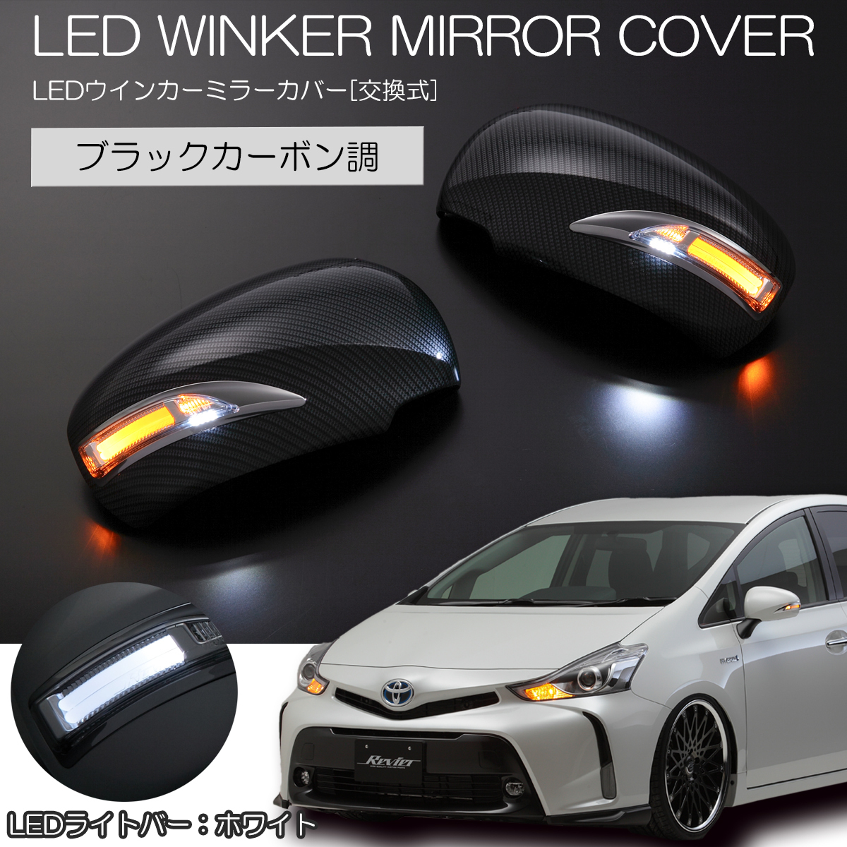 > [在庫処分特価] 40系 カムリ 後期 LEDウインカーミラー 純正交換式 カーボン調/白光 ドアミラー カバー交換式 ウインカー