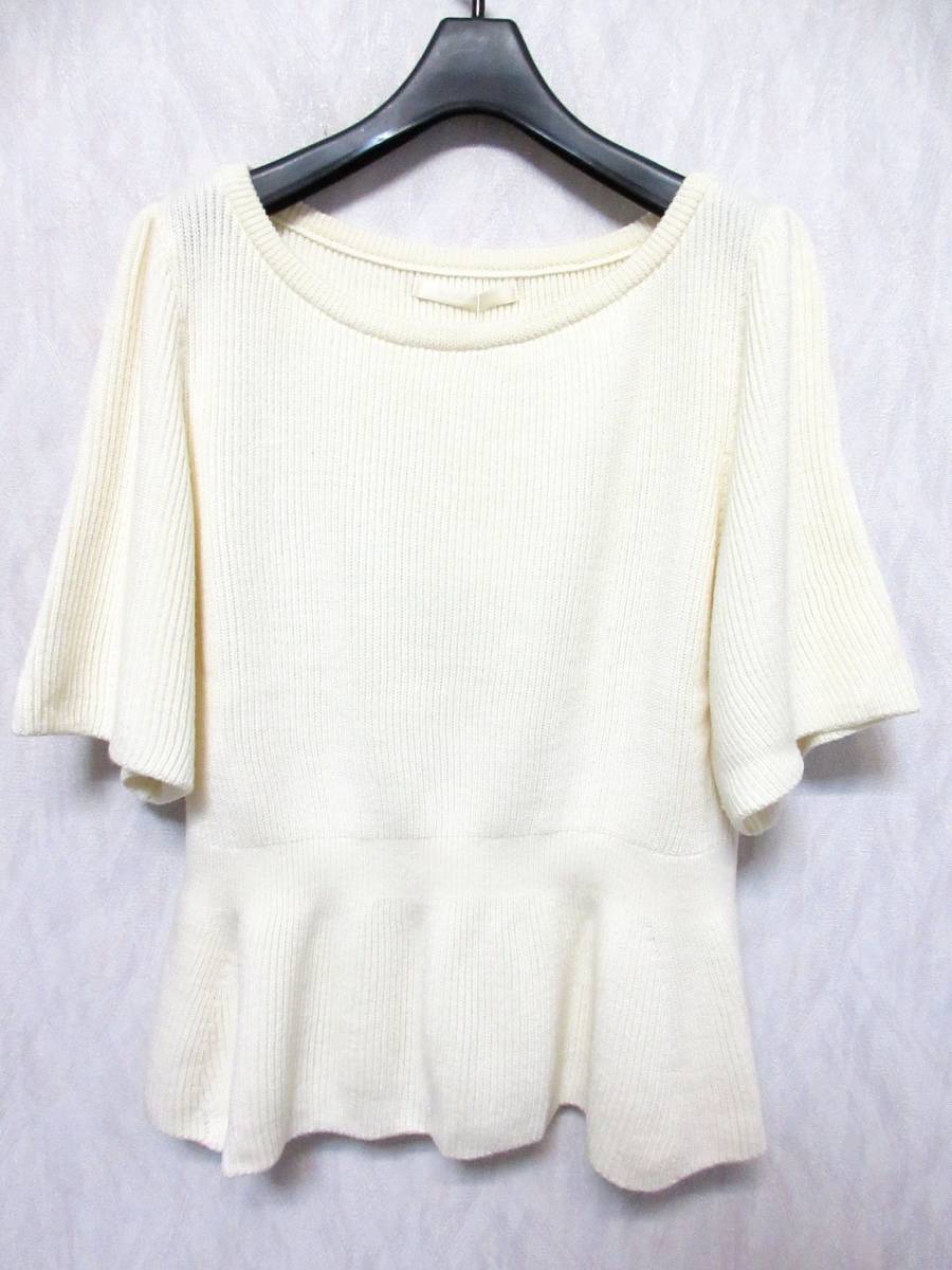 - 未使用品 ナチュラルビューティー ニット セーター ハーフ袖 レディース 13号 大きいサイズ アイボリー 亥2278