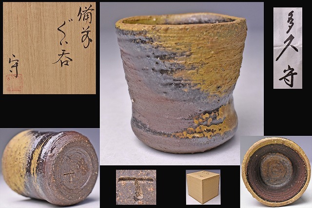 - 多久守 ★ 備前 ぐい呑 ★ 共箱 栞 ★ 師:木村隆明 ★ 窯変による景色が素晴らしい逸品 ★ 酒器 盃 杯 ★