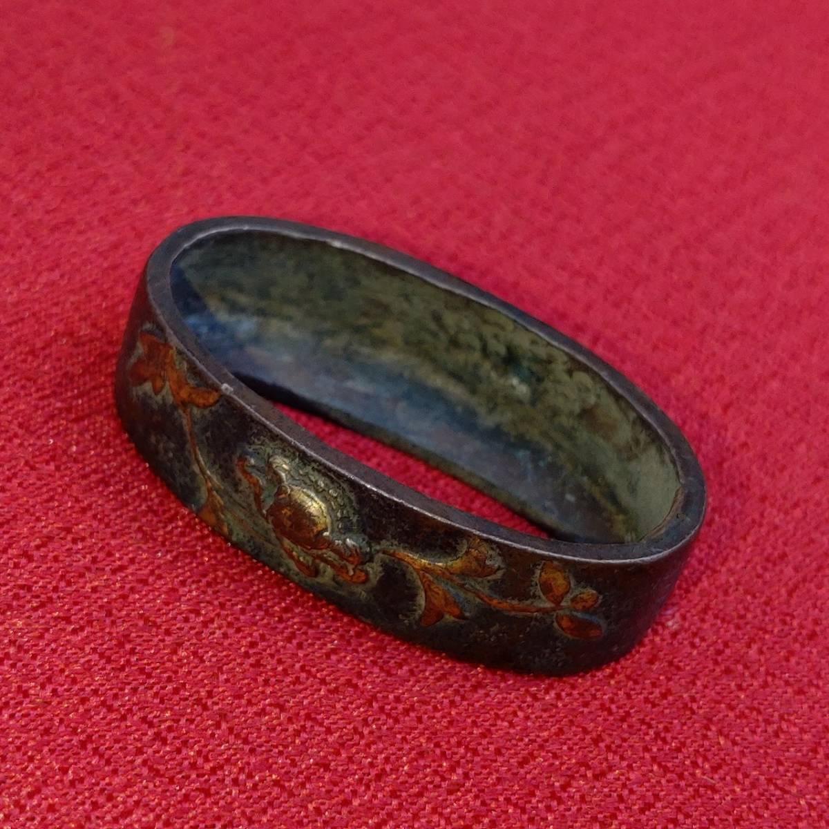 - 刀装具 縁 金具 時代物 銅製 花 蝶 古物 骨董 刀身具 日本刀の部品 全長約32㎜ 幅約21㎜ 高さ約10㎜ 身口約25㎜ 身幅約7㎜ 重量15g【3211】