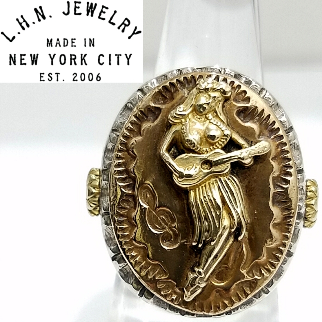 > LHN Jewelryシルバーリング14号HULA GIRL SOUVENIR RINGメキシカンBrass Silver Copperスーベニア真鍮 銀 銅ポリネシア ハワイ バイカー