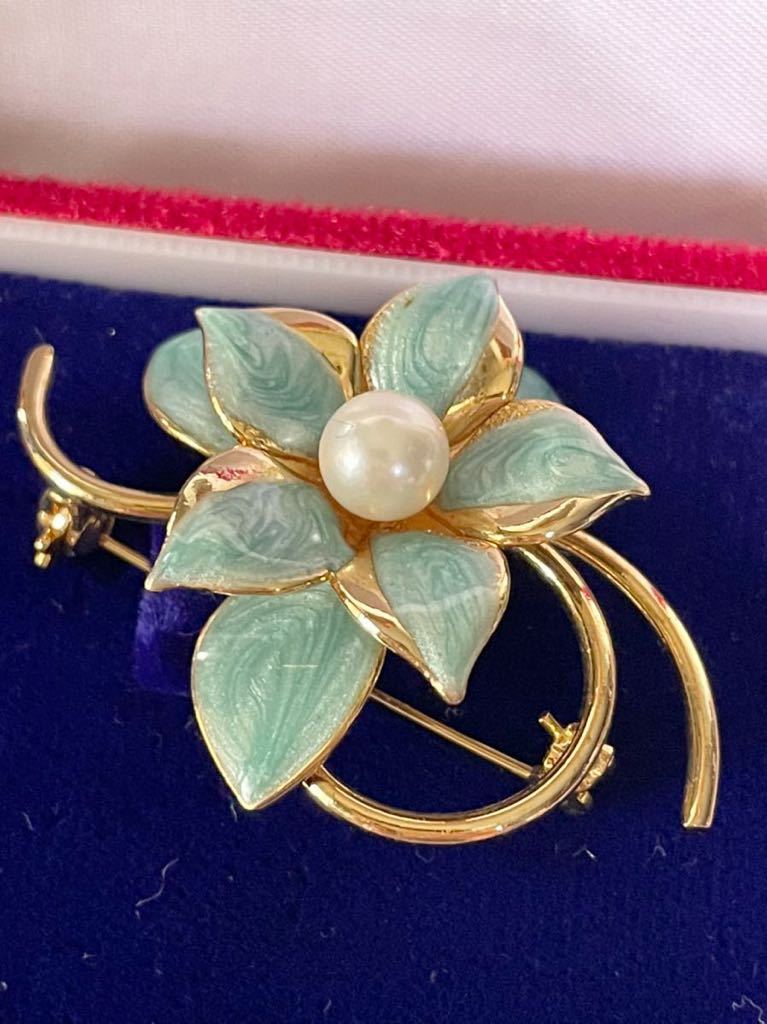 - 【新品】ブローチ 真珠 花模様 ゴールド 女性向け 宝石 jewely 品位品格ある逸品です。慶弔行事 入学式 卒業式のご婦人の胸元に